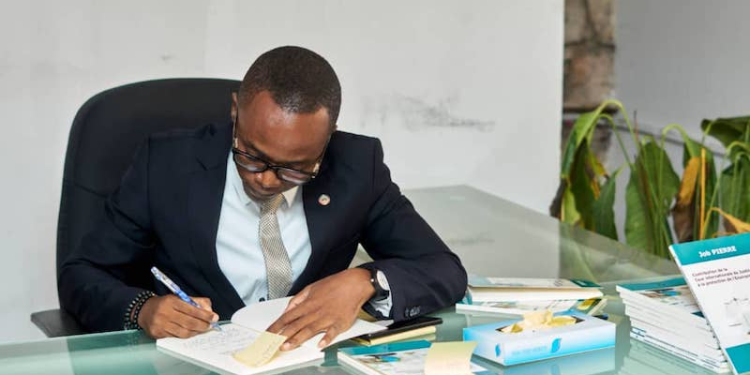 « C’est avec un sentiment de joie mêlée de fierté que je présente cette première publication, un travail que je peux affirmer d’excellente qualité, tant sur le plan scientifique qu’académique », confie d’emblée Job Pierre, tout en signant pour ses lecteurs. « Cet ouvrage est issu du mémoire que j’ai soutenu dans le cadre du master en droit international et comparé de l’environnement à l’Université de Limoges », précise-t-il, assis à la table, vêtu de sa veste. « Le travail a été évalué très positivement par le jury, et l’université n’a émis aucune objection à sa publication, ce qui m’a encouragé à franchir le pas », poursuit-il avec satisfaction.